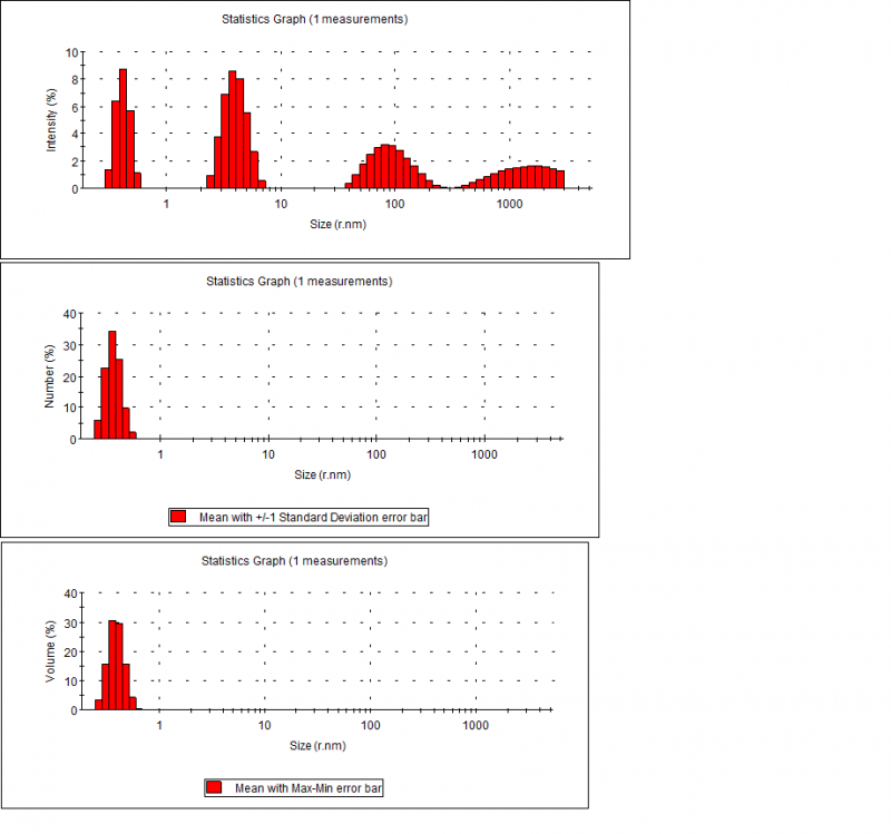 在用马尔文Zetasizer nano ZS90 测量蛋白粒径,测量结果在100 nm以内。但是发现Intensity PSD,Volume PSD,Number PSD完全不一致,其中Intensity PSD显示是多峰分布,而Volume PSD,Number PSD只出现单峰,如下图。请问各位大侠,这是什么原因? 图.png |