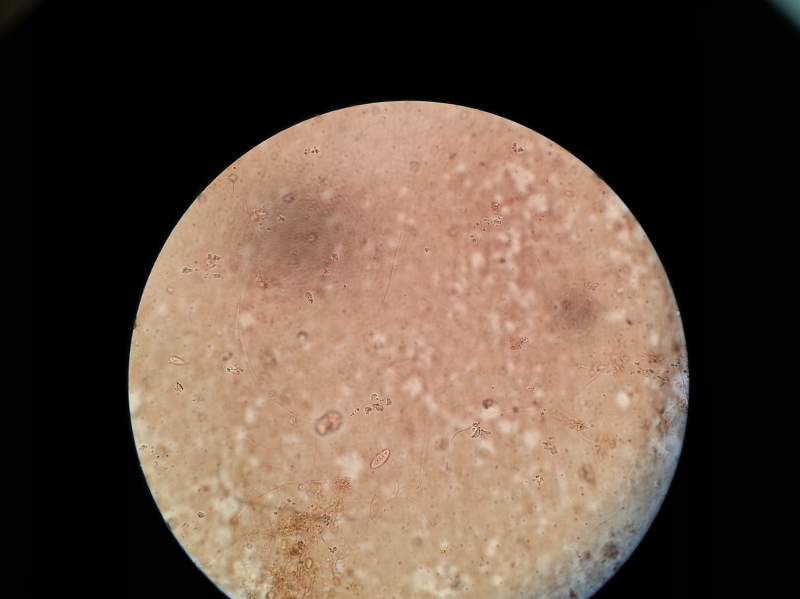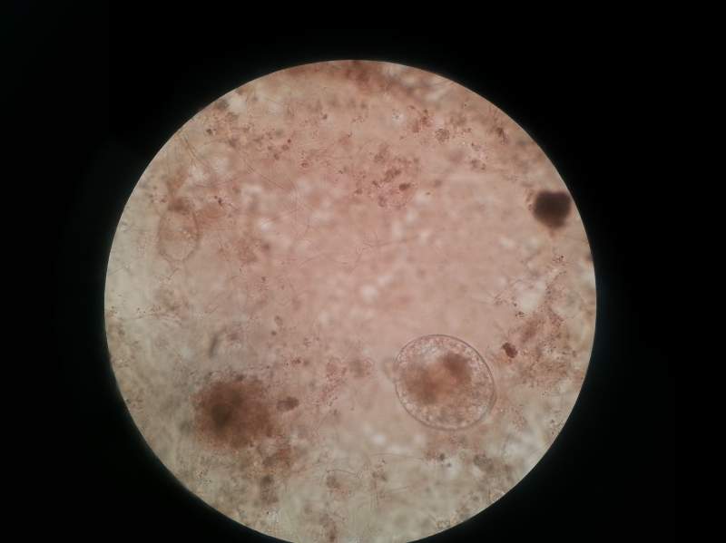 不会是气泡吧,一般来说,镜检最大的就是钟形虫了