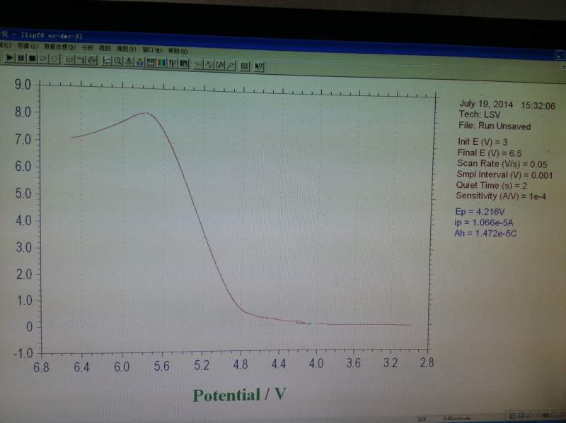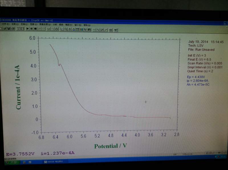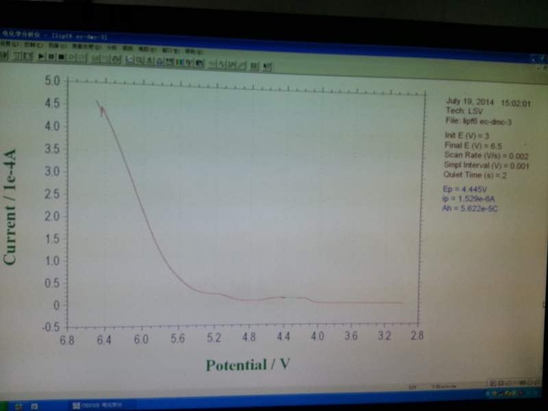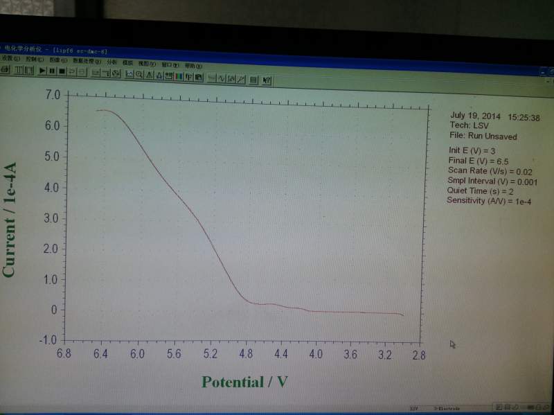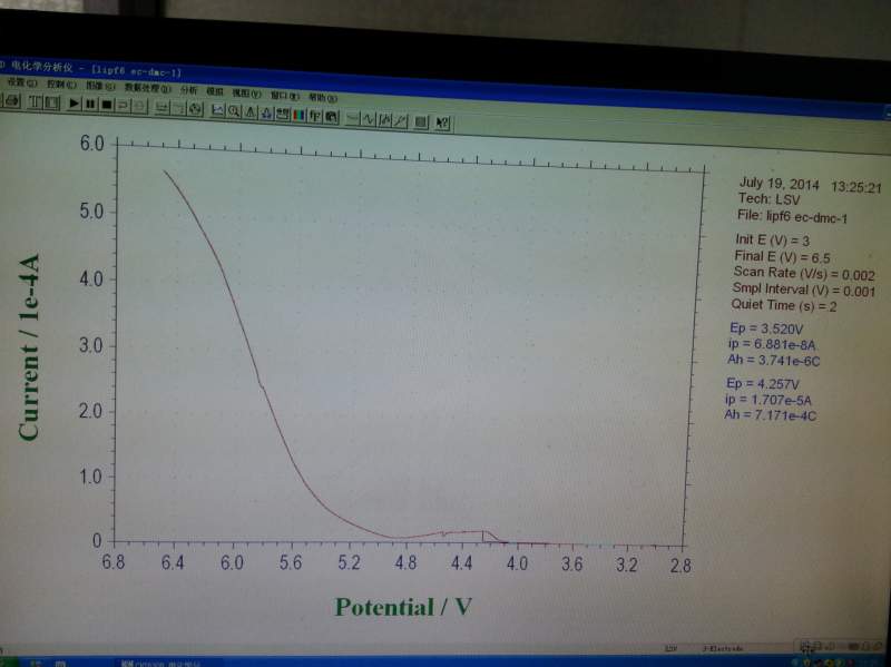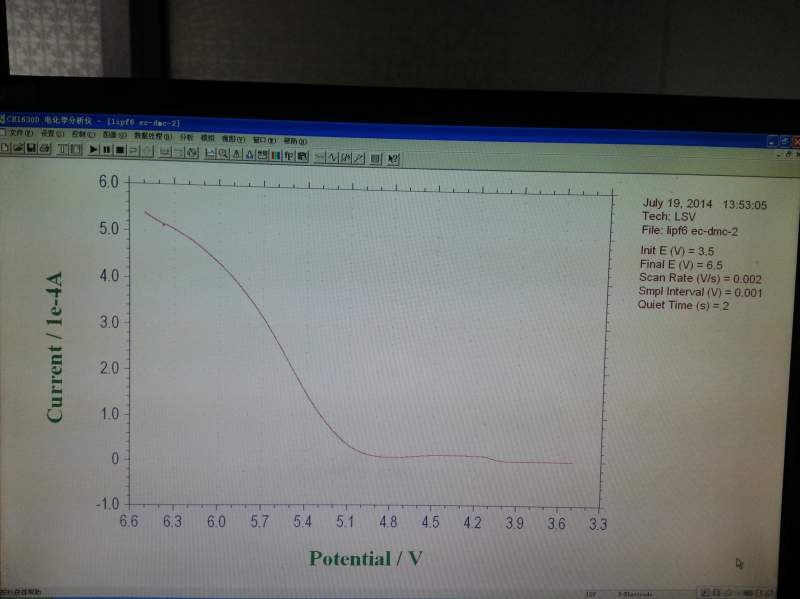 用LSV测试锂离子电池电解液1M LiPF6 EC/DMC(1:1) 的电化学窗口求助 已有1人参与