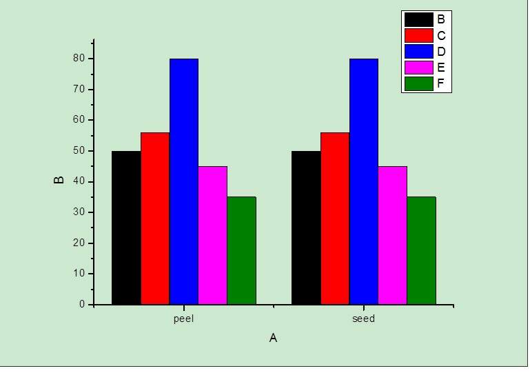 想把第二张图做成类似于第一张图那样,分为peel和seed两组,每组有5个数据,颜色一样的是对应的,但是图做不出来