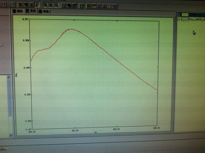 我这几天在做CeO2-Au,合成过程中希望金的吸收峰在520nm,但合成出来,要不是没有金的吸收峰要不是就是峰在600nm(如下图),没有做TEM,请问大神这是怎么回事,如何改进