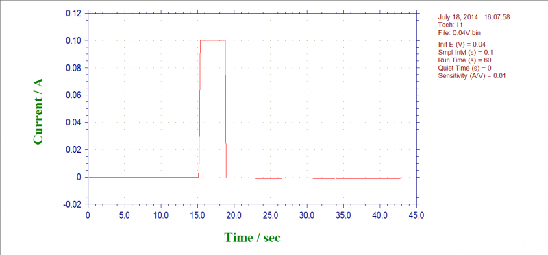 光催化新手,想测光电流的I-T曲线,目标是这样的图,Ag/AgCl作参比电极,工作电极也做好了,外加电压0.4V,但一光照电流就超量程了,即使不用半导体材料的电极也是这样,感觉光照对参比电极影响特别大,请教一下各位大神,测光电流时需要对参比电极有个保护措施吗?!还有测量时测得数据是哪两组数据,可以直接得到I-T吗?新手摸索中,请求各位大神帮助!!! 希望得到这样的图 超量程的图 |