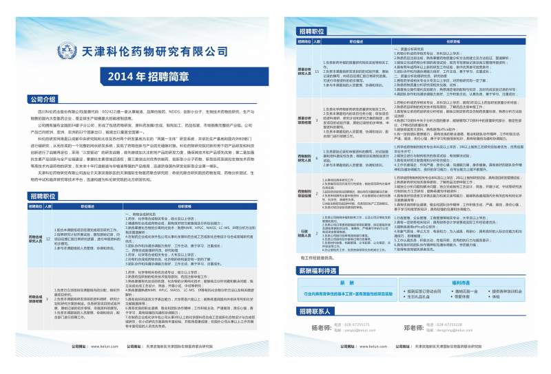天津科伦药物研究有限公司2014年招聘