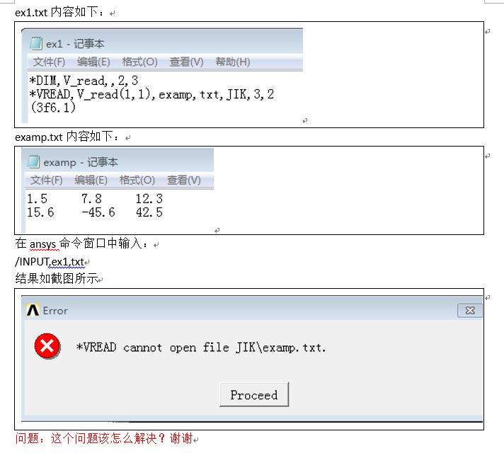 我仿照一本书上关于vread的例子,但是总提示*tread cannot open file ##.txt,不知怎么回事。困扰了我N天了。 该注意的问题我都注意了,比如不能在GUI下使用tread命令,另外文本里的数据格式应该也没有错,因为数据都很整齐,保证了对齐。而且查了一下资料,如果数据格式本身有问题,ANSYS报错应该是vread error in data read,也就是说,是读取数据时发生了问题。而我的问题是ANSYS压根就打不开txt或dat文件,还没到读取数据那一步呢。不知我的分析对不对。命令流如下: *DIM,VVV,,2,3 *VREAD,VVV(1,1),EXAMPLE,TXT,,JIK,3,2 (3F6.1) EXAMPLE.TXT文件中的数据为 1.5,7.8,12.3 5.6,5.6,42.5 上面这些数据用空格分开也是出错,正如上面所说,应该不是数据格式问题。 |