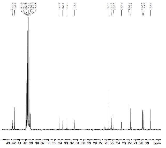 碳谱数据:18.45,  19.67,  19.77,  21,84,  22.11,  23.44,  24.87,  25.17,  25.73,  25.73,  31.56,