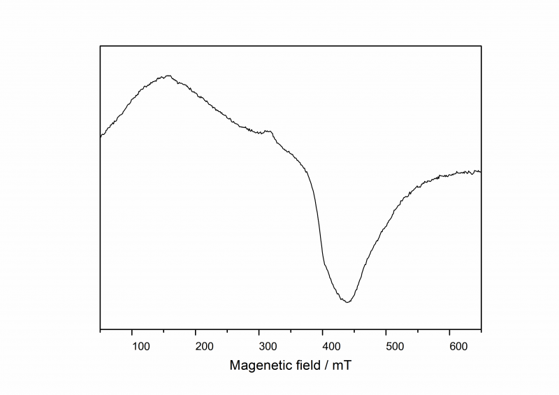 扫了一张EPR谱,不知道正不正常,做的是关于Fe的,想检验Fe3+存不存在。样品还原后在手套箱中封入核磁管里然后做的。中间小峰g=2.04,文献中归结为Fe-O-Fe species with ferri-, ferro-, and/or antiferromagnetic behavior。谢谢大家。 EPR.png |