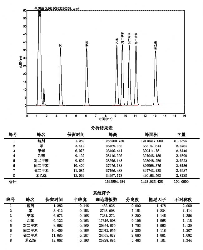 国标测苯系物有两种色谱柱,毛细管柱是PEG-20M顺序跟这个一样