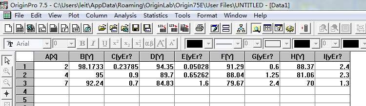 各位大侠,最近做的实验数据如下: 1day 10% 92.24 25% 84.83 50% 79.67 100% 70 2day 10% 95 25% 89.7 50% 88.04 100% 81.06 3day 10% 98.1733 25% 94.35 50% 91.29 100% 88.37 想用origin画出如下下效果的图,大家有具体的步骤吗?越具体越好,谢谢! 多层柱状图.jpg |