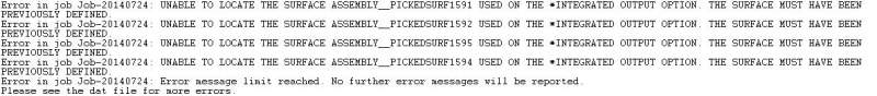 想要用abaqus模拟桥梁连续倒塌,运行时出现图示错误,求解答 Ps:模型是从师兄那里拷过来的,我照着他的模型自己建了一个一样的,想独立完成一个建模的过程,我理解的错误提示是说我有一些面没有事先定义,可是我完全是按照师兄模型里面一个一个先建立surface,再设置“接触对”的,我想问知道到底是什么原因出现这样的错误,求大神指点! abaqus错误20140724171405701.jpg |