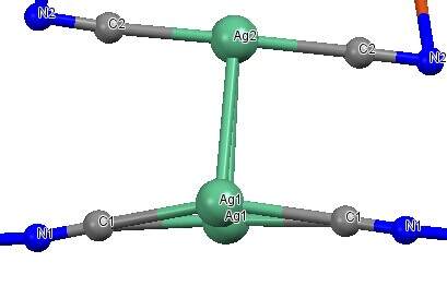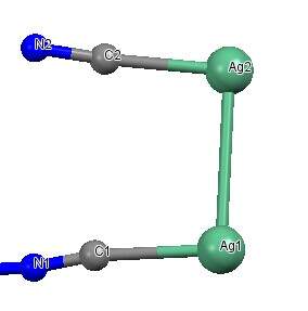 最近合成了一个晶体是含有[Ag(CN)2]-的配体的化合物,我在解结构的时候Ag1原子是单个的就是在Asymmetric unit 里面,但是当在diamond里面堆积的时候,Ag1怎么 感觉变成了类似统计分布的情况呢?