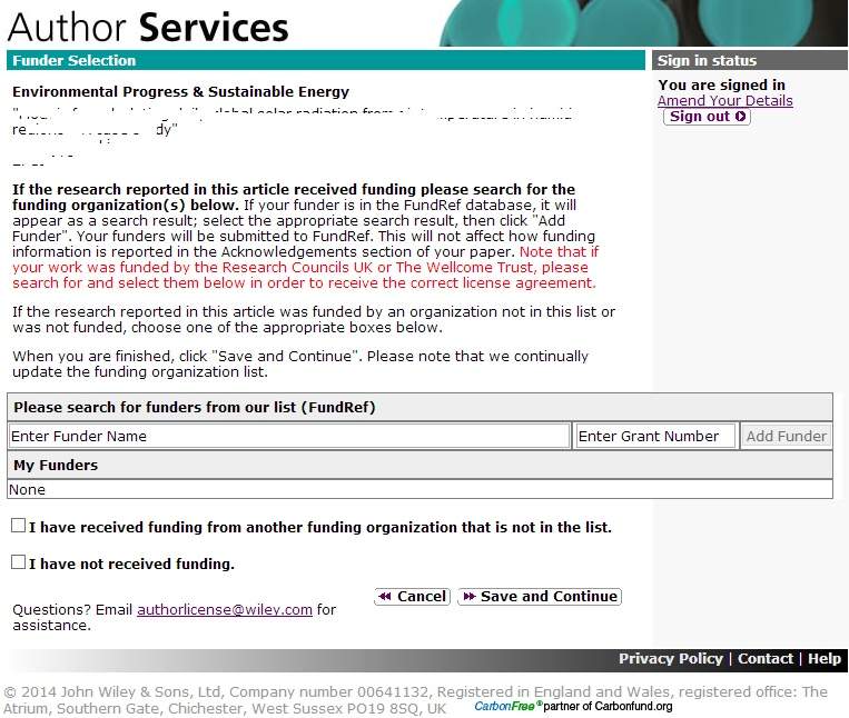 Wiley期刊(Environmental Progress)的licence agreement填写 已有3人参与