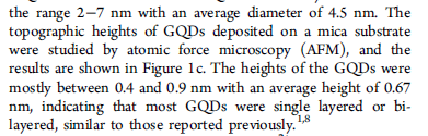 图中的上半部分是AFM获得的图像,偏右的地方有一条竖线,下图就是沿着这条竖线的高度曲线。曲线的横坐标为扫描点的位置,纵坐标为对应点的高度。因此,通过曲线上的峰的高度就可以近似测出图中颗粒相对于基板的高度。 从曲线中可以看出,基线的高度基本在6A的位置,各个“峰”的高度大约在11~13A,所以,高度差约在5~7A,即0.5~0.7nm。基本原理是这样,但更精确的统计需要对曲线数据做数学处理,而不只是用肉眼看;并且需要更多的数据,图中这么短一条线是统计不到那么多颗粒的。图中应该只是一个示例,实际作者应该是做了更多的类似的曲线,或者直接用软件做统计的。 |