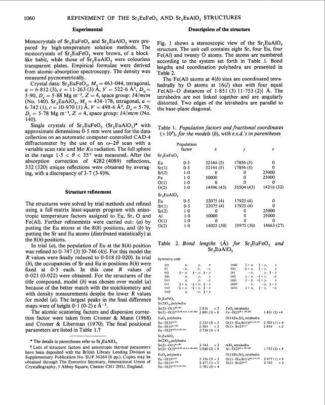 学晶体的朋友帮忙看看,Sr2EuAlO5中,Eu的格位是不是一个,附件是这个晶体文献