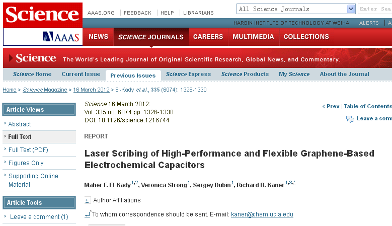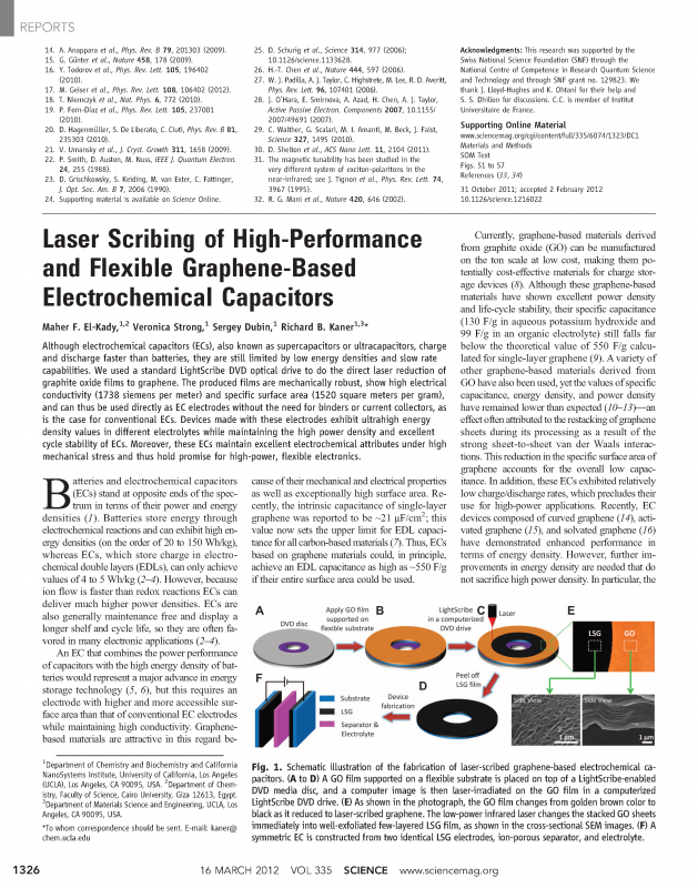 Laser Scribing of High-Performance and Flexible Graphene-Based Electrochemical Capacitors