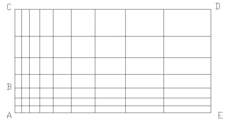 | 这个应该还是比较还是比较好画吧,你没有使用aspect ratio吗?你应该是先做出一个长方形,再用一条平行于AE的直线BM(M为和DE的交点)分一下,这里注意选择connect。画网格时候,在AB上选择internal count为3,aspect ratio为1.2左右,AC边上选择internal count为10,然后用map就可以画出下面的了。接着上面的,在BC边上选择internal count 为4,aspect ratio为1.2,再用map画,就可以了。 |