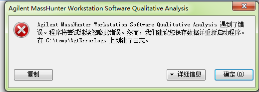 电脑(win7)安装了安捷伦液质质的数据分析软件之后,出现了问题。当打开软件时,先弹出出错的窗口,我按确定关了第1次,然后它又弹出来,我再关第2次。之后,按打开文件,又弹出那个窗口,导致我无法看数据。别人的电脑是弹出2次后,打开数据文件就没事了。 1.png 2.png |
