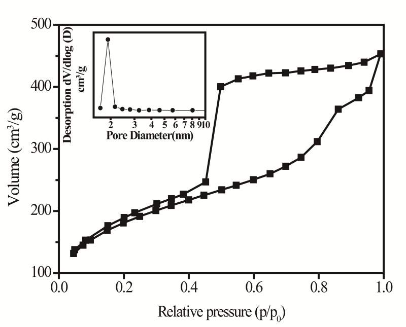 IUPAC 归类了4种吸附/脱附回滞环(hysteresis loops) H1: 有较窄孔径分布,孔径较均一,如SBA-15 H2: 有瓶颈效应(或开口较窄)的孔(ink-bottle pore),如SBA-16 H3: 片状材料堆积起来的孔,通常片与片之间没有固定结合(non-rigid),如时下时髦的graphene H4: 同时具有无规则的介孔和微孔 通常,实际材料展示出来的回滞环更复杂些 你这个材料应该做两个孔径分布(吸附和脱附) P/P0=0.7-1.0之间的点还得再多些 2nm的峰不知哪来的,有可能是因为选的点不够多 在做微分的时候,突然出现一个跳跃 是mesoporous carbon materials BTW,怎么做出来的?hard-template or soft-template? |