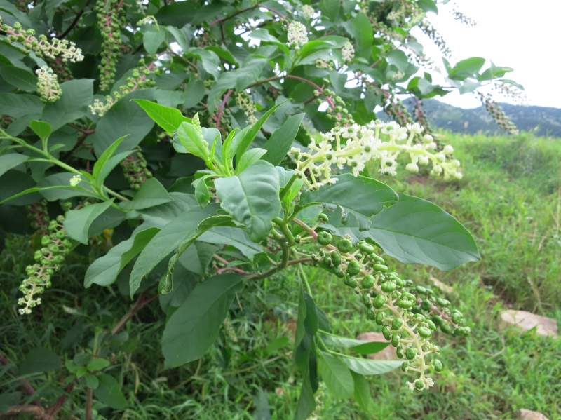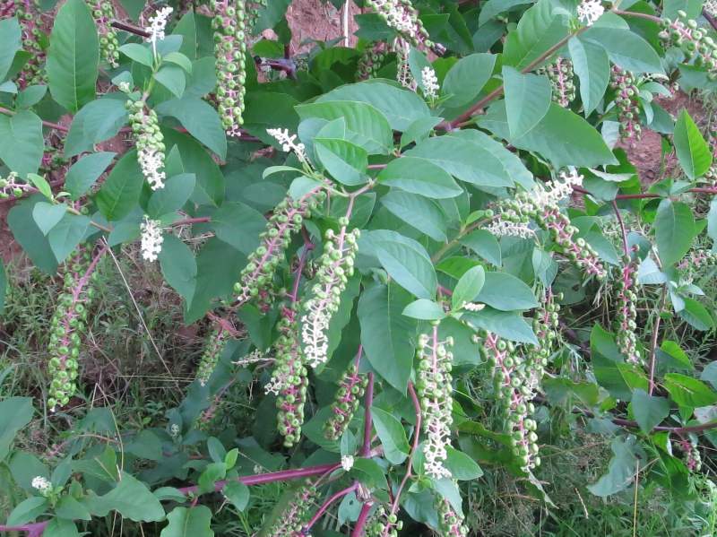 商陆(拉丁学名:Phytolacca acinosa Roxb) (本草经) 章柳(古代通称),山萝卜(云南、贵州、四川、湖北、陕西、河南),见肿消(云南、四川、贵州),王母牛(山东),倒水莲(江西),金七娘、猪母耳(福建),白母鸡(江苏) 商陆科、商陆属多年生粗壮草本植物。根肥厚,肉质,圆锥形。叶卵圆形,全缘。夏秋开花,花白色,总状花序。心皮八个,离生。浆果扁球形,紫黑色。果序直立。 药用商陆的干燥根。秋季至次春采挖,除去须根和泥沙,切成块或片,晒干或阴干。 根入药,以白色肥大者为佳,红根有剧毒,仅供外用。通二便,逐水、散结,治水肿、胀满、脚气、喉痹,外敷治痈肿疮毒。也可作兽药及农药。果实含鞣质,可提制栲胶。嫩茎叶可供蔬食。 商陆主产河南,湖北,山东,浙江,江西等 不是外来植物,这东西到处都有。 |