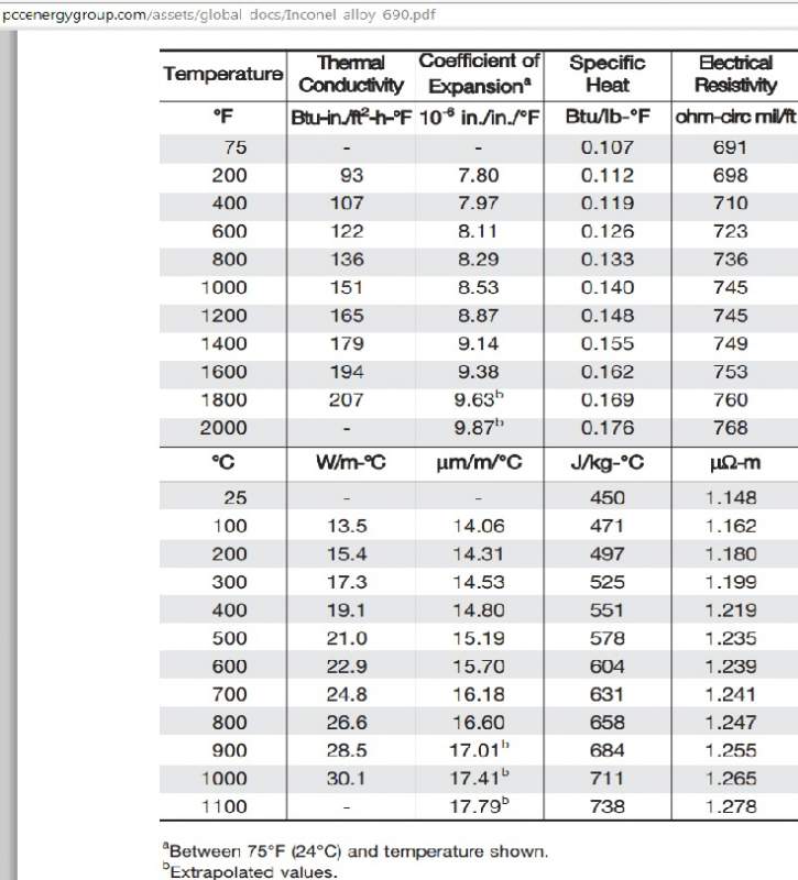 [感谢奖赏] 数据来源: http://pccenergygroup.com/assets ... conel_alloy_690.pdf 计算方法: http://mathcentral.uregina.ca/QQ ... 09/j/florence1.html -------- Inconel 690 热膨胀系数.jpg 计算方法.jpg |