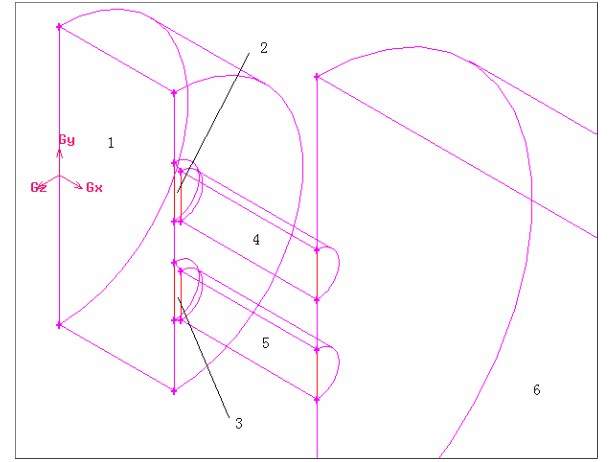 各位大神们:小弟是一名菜鸟,想请教一下,在gambit中如何将原来结合在一起的几何体分离开?如图所示:将123456分离开?希望给予解答!不胜感激!