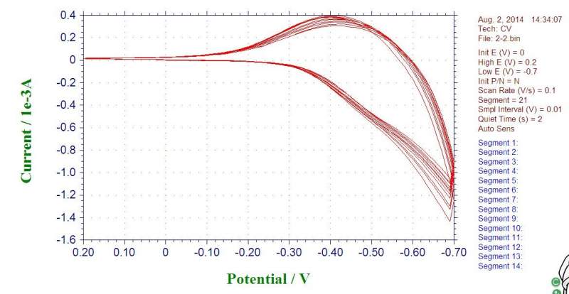 如图我在电化学工作站里的图是这个样子的 做在origin里就变成这样了 注意看-0.65V的地方,在电化学工作站里非常平滑,作图后出现明显拐点 这是怎么回事啊,我查看原始图保存的txt文档,里面数据量很少,每隔0.05v记录一个数字 我想增加记录数据量,该怎么做? 或者直接的,我该怎么把图搞好 |