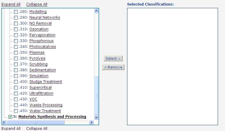 我试了一下,可以选择大类继续呀!“materials synthesis and processing" 就没有小类了,你在“materials synthesis and processing" 前打勾,点“select”就可以了!