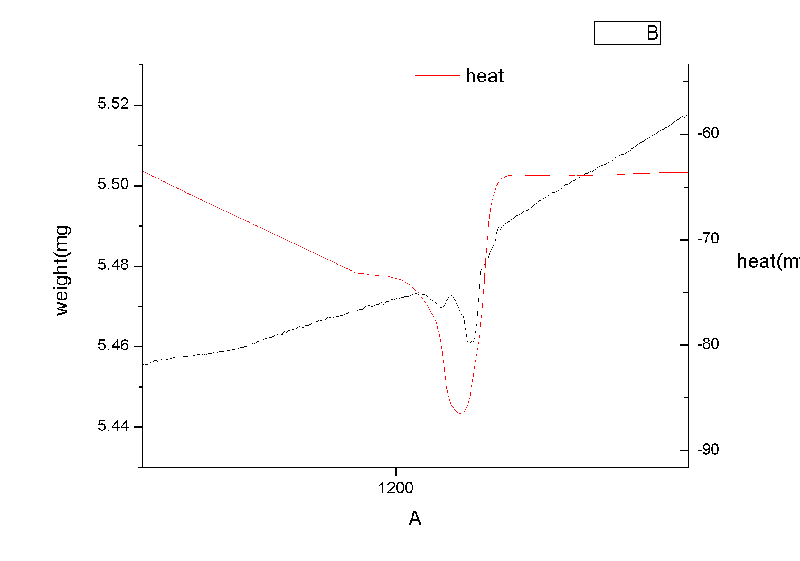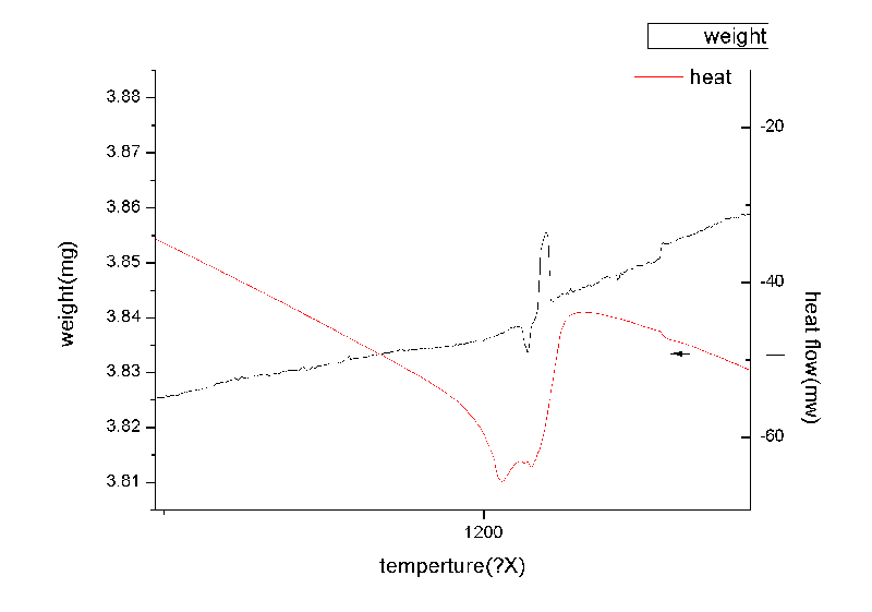 这就是我测得黑色线是重量,单位mg,红线是热流mw,横坐标温度比较高。大家帮我分析一下,初次接触,没有一点头绪、
