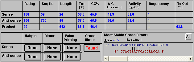 | 前段时间,我在Primer上设计的引物,上游为:5-GATGTAGTTATGGTGCTTAGACGC-3.下游引物:5-ACGAACCAGCCATTGACG-3,引物合成单上显示上游引物TM值为55.7度,下游因为TM值为50.9度。我设置的温度梯度从43℃~60℃,但均未跑出条带。但用我同学在同一毒株上设计的引物则能跑出条带。能排除的原因我都排除了,现在真不知道问题出在哪里?恳请各位亲帮我分析分析,提提建议,我实在没有办法了!我在此谢谢大家了! |