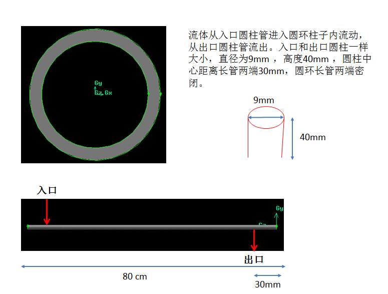 接我上一个帖子,见http://muchong.com/bbs/viewthread.php?tid=7736611&pid=7#pid7 首先感谢版友的帮忙,现在需要在这个圆环长管上下两端分别开一个圆柱入口出口,流体在圆环内流动,圆环是直径为16mm的外管套着直径为13mm的内管,圆环长管80cm,长管两端封闭。整体是对称结构。具体尺寸见下图,不知道如何做到在圆环长管开两个圆柱入口出口,并保证对称。欢迎大家讨论发表可行建议,多谢……有结构图附件更佳! QQ截图20140806091004.jpg |