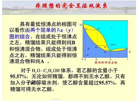 我用减压蒸馏的方法蒸馏DMAC与乙酸的混合物,塔顶出来的却是纯的DMAC 有人解释是说DMAC与乙酸的共沸物在共沸组成时是80:20左右,而混合液中的 DMAC的含量在95%左右,所以起初蒸馏时塔顶出来的是DMAC,这样的解释合理吗? 那我如果蒸馏乙醇与水的混合物,如果混合物中水的含量高于5%,会先蒸馏出水吗?有点迷糊 w139h2109741_1407160784_230.jpg |