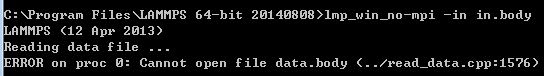 我刚下了最新版本的windows(14.7.28) 的lammps想学习使用一下,但是在按照说明打开时提示如图,log文件内容如下!请各位多多指教!谢谢!