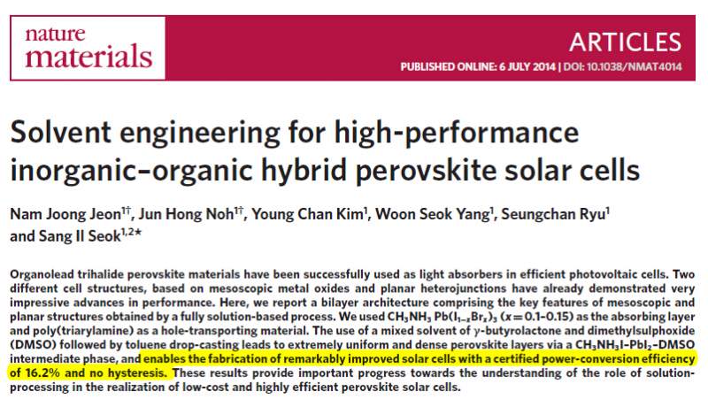 Nature2013+ ACS Nano2014 钙钛矿 光伏产业强势兴起 效率在过去12个月提高到15%