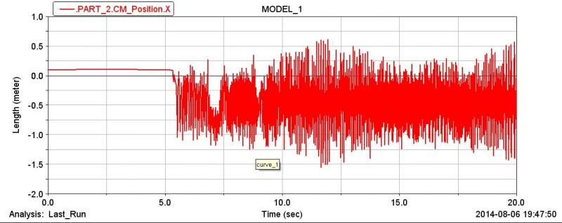 模型如下图所示,我只在X方向上施加力F=【-1e5*sin(0.2*pi*time)】,没有施加重力,为什么在Y、Z方向上会有力的作用? Y、Z方向的分力虽然很小,但是我之后要做六个自由度的仿真,到时候只施加力不加约束,得出来的结果肯定错了。 做静态仿真得出的结果是正确的,但是动力学仿真得出的结果就是错误的了 |