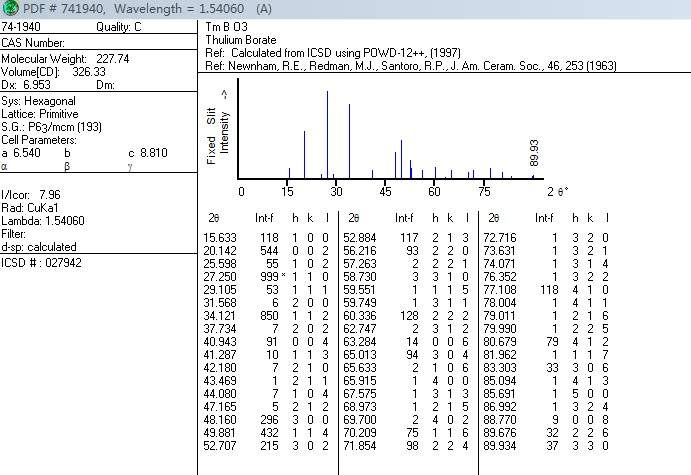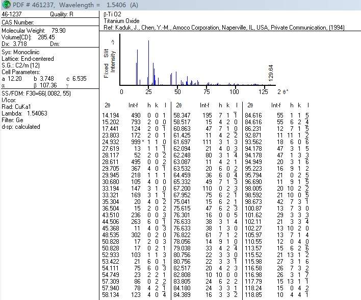 求XRD的JCPDS卡片数据