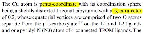 看了篇文献,请教下在晶体描述里(图1)的τ5 parameter of 0.2 及u1t-carboxylate是什么意思?怎么得到的?谢谢大神们