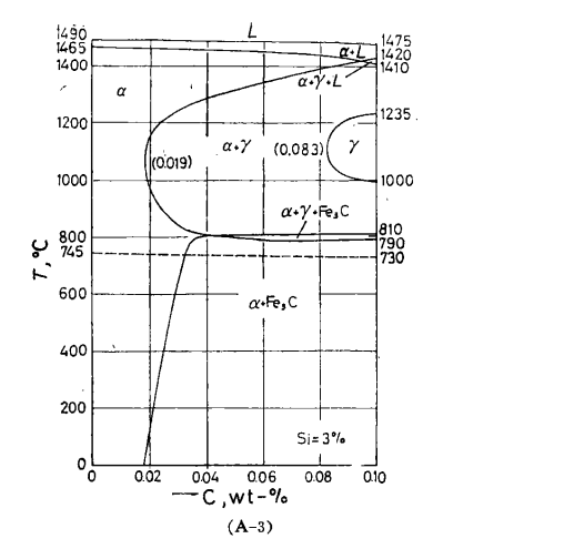 硅含量固定为3.14%的Fe-Si-C三元相图垂直截面图,谢谢各位大牛
