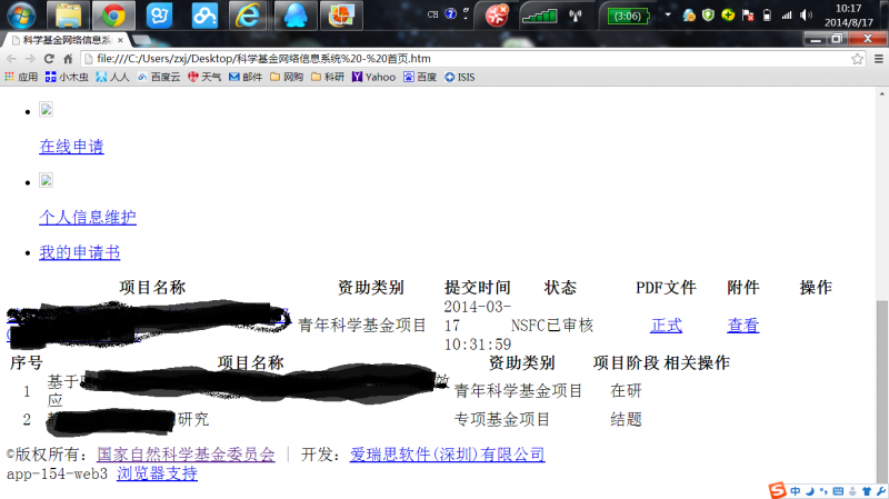 今天一上来,看到这么多在研主题帖,好奇心驱使试了一下,我发现跟很多人的不一样,所以是不是存在如下几种情况: 第一,进入ISI首页后,有些人能直接看到自己的项目,所以查看源代码后能发现在研和不在研的情况; 第二,进入ISI首页后,也有很多人看不到自己的项目,所以查看源代码也白搭,根本不会存在”在研“或者不在研的情况。 仅供讨论 |