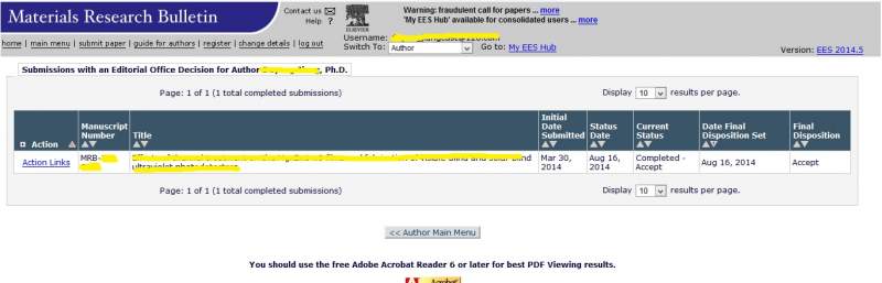 三月底投稿,五月开始审稿,中间催稿两次,换审稿人3次,最后直接接受... 虽然有点慢,但是结果还是很让人开心滴... 本人研究生第4篇SCI,准备不再下实验室,出去找工作,希望找工作顺利! 感谢虫虫们的陪伴! 无标题.jpg |