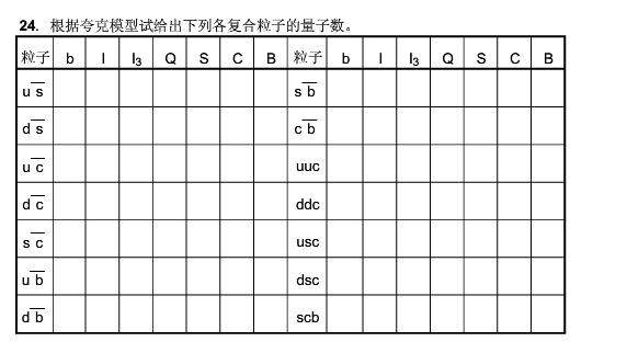 问一道粒子物理题目:根据夸克模型试给出下列各复合粒子的量子数。