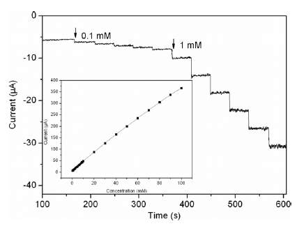 设定一个恒电位后,再滴加待测物,每滴加一次电流会发生变化,即出现阶梯状的电流-时间曲线