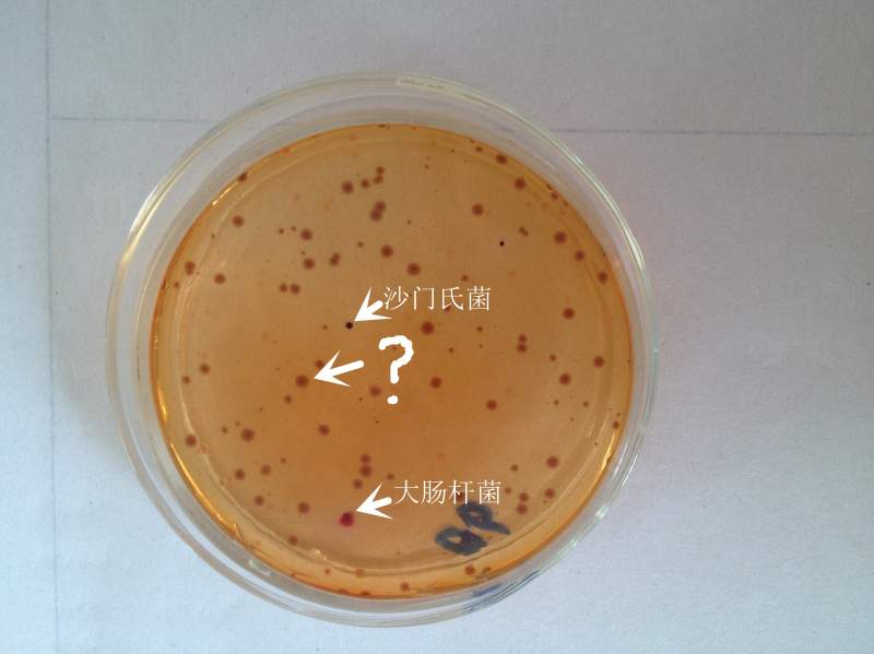 胆硫乳培养基上长了三种菌,红色的是大肠杆菌,黑色的是沙门氏菌,请问有谁知道那种暗红色的是什么菌,谢谢啦