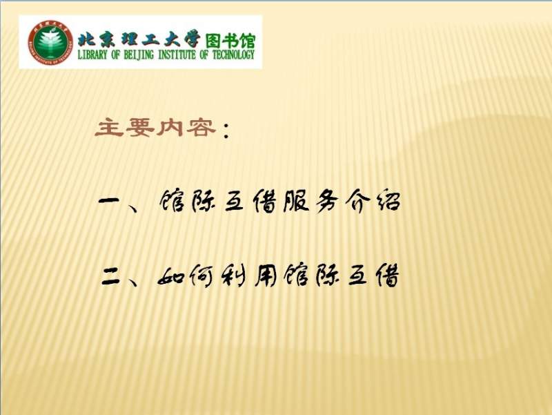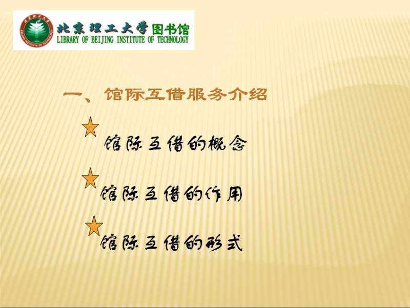 览他馆之书,拓阅读视野 馆际互借服务的利用 一、馆际互借服务介绍 馆际互借的概念 馆际互借的作用 馆际互借的形式 二、如何利用馆际互借服务 1.jpg 2.jpg 3.jpg [ Last edited by 唐tjg on 2014-8-20 at 10:07 ] |