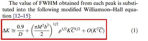 Warren–Averbach方法and Williamson–Hall方法计算位错密度