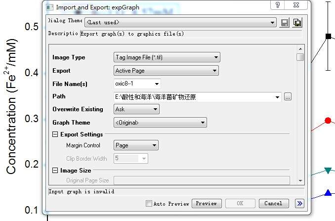 最近用这个软件作图,但是点击“file-export graph”后,出现的对话框“OK”那个按钮是灰色的,左下角提示说图片无效,为什么?
