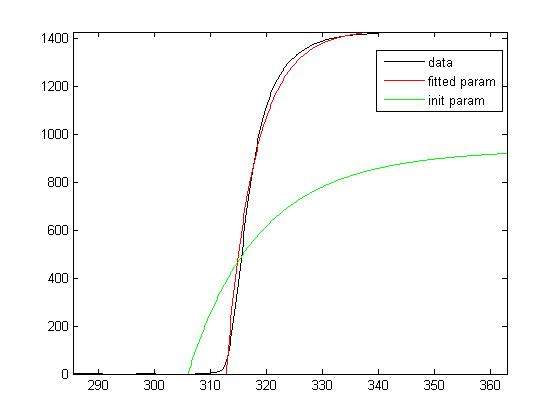legend('data', 'fitted param')