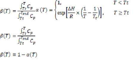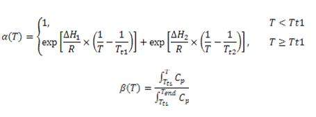 自变量是T,因变量是Cp。Tt 和ΔH 是拟合常数。请用 β(T) 对T作图,并根据以上方程拟合得出Tt 和ΔH的值。(Tend是数据的最后一个T值。)