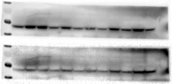 做的一个中等分子量的蛋白,超敏显色液,Odyssey系统曝光 第一次曝光感觉不太好,用水冲掉显色液后,重新敷上显色液,再曝结果完全不一致。 图在下面: 上面是第一次曝光,下面是第二次的: 无标题.png |