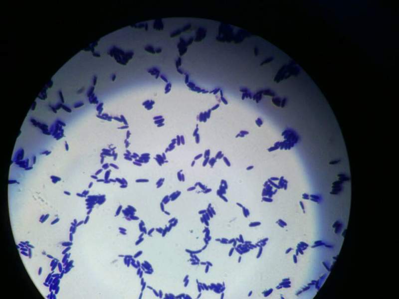从发酵粕中分离得到的,菌落乳白色边缘光滑,结晶紫染色,100倍油镜下观察,短棒状,有出芽。以前养过的酵母都是椭圆状的,不知道这个是不是酵母