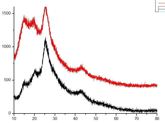 测的聚苯胺的XRD,在文献上看到衍射峰对应2Θ=15、20、25,20、25分别归属为周期平行于聚合物分子链和周期垂直于聚合物分子链,请问15对应什么。在下图中,两中物质15与20°的衍射峰出去明显的区别,说明了什么问题。请帮忙分析。 聚苯胺.png |