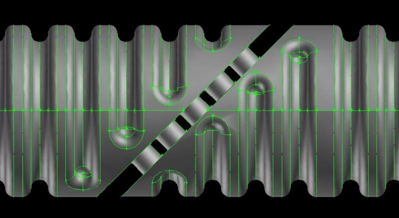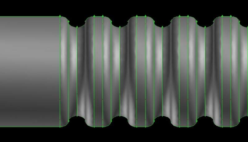 对如图这样内凹的波纹管道进行网格划分,由于管道比较长,整体用四面体的网格划分,网格数实在太大了,有更好的划分方法吗?整体用四面体划分效果不太好,同时希望靠近壁面的地方网格加密,不知道该怎么划分好,求助各位了!